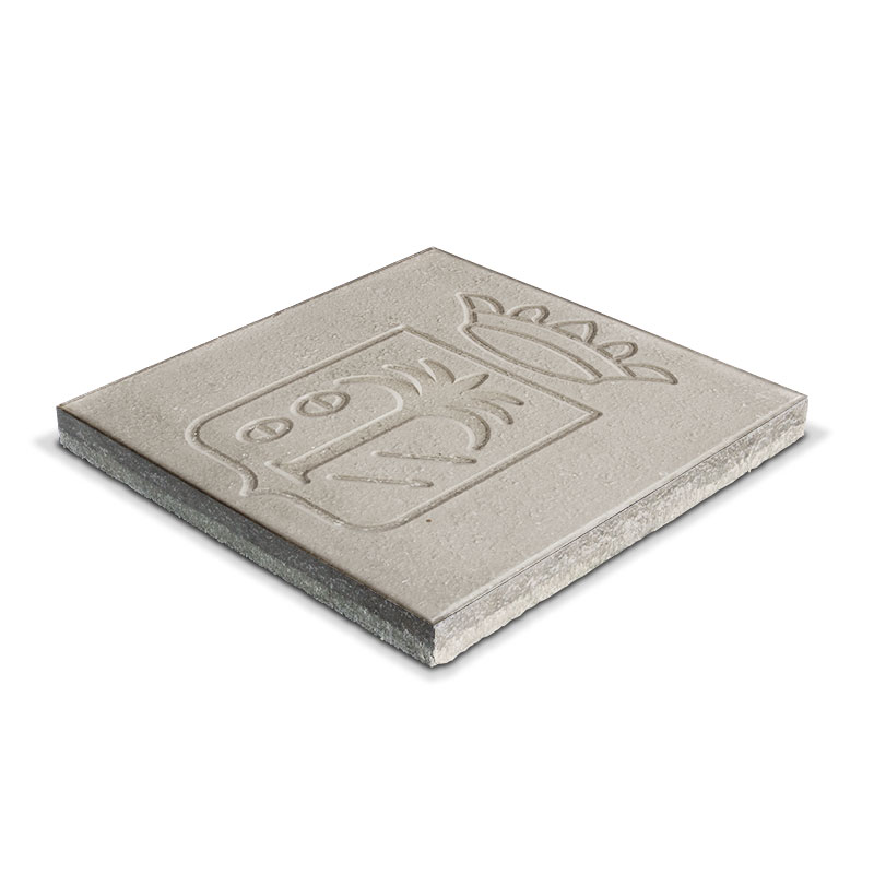 Terrazo de 40 x 40 en color gris con el escudo de La Palma del Condado.