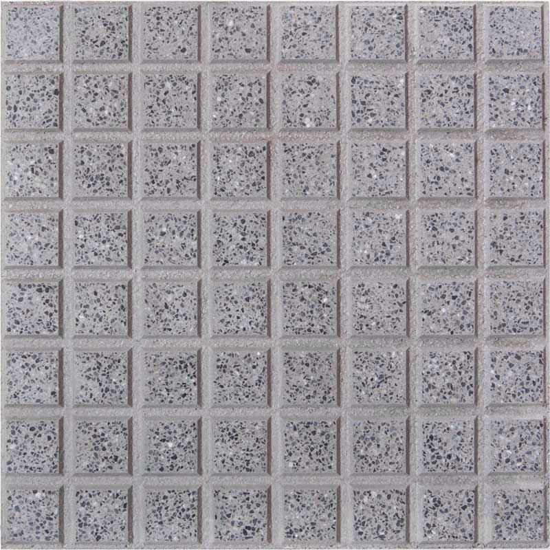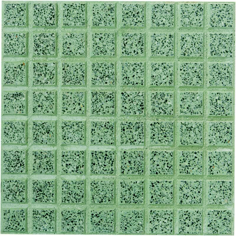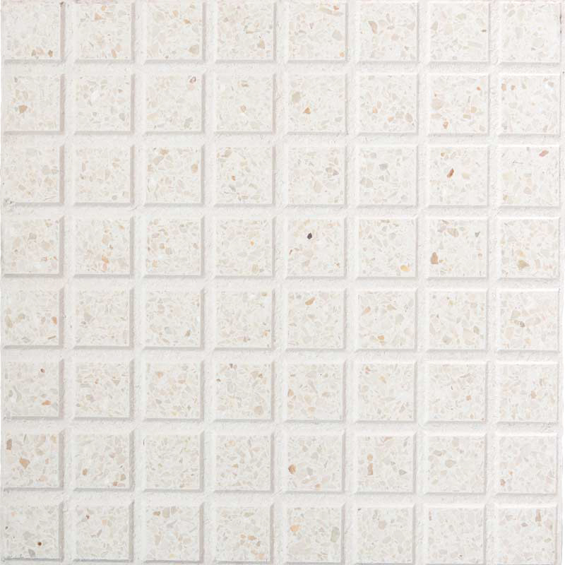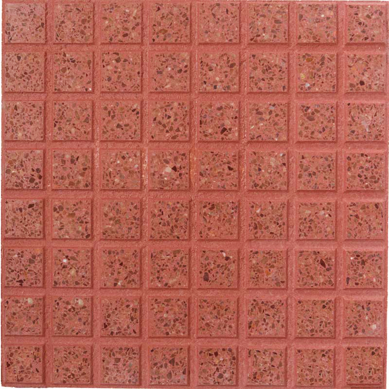 Terrazo de diferentes colores y dimensiones con diseño en forma de tacos.